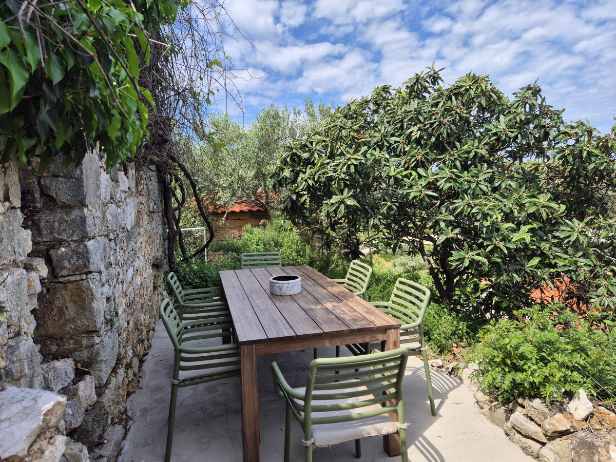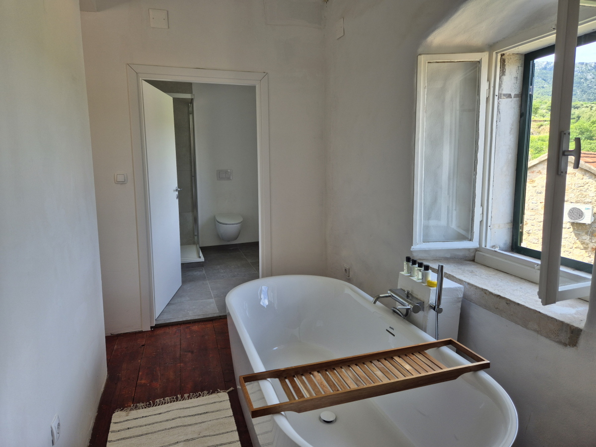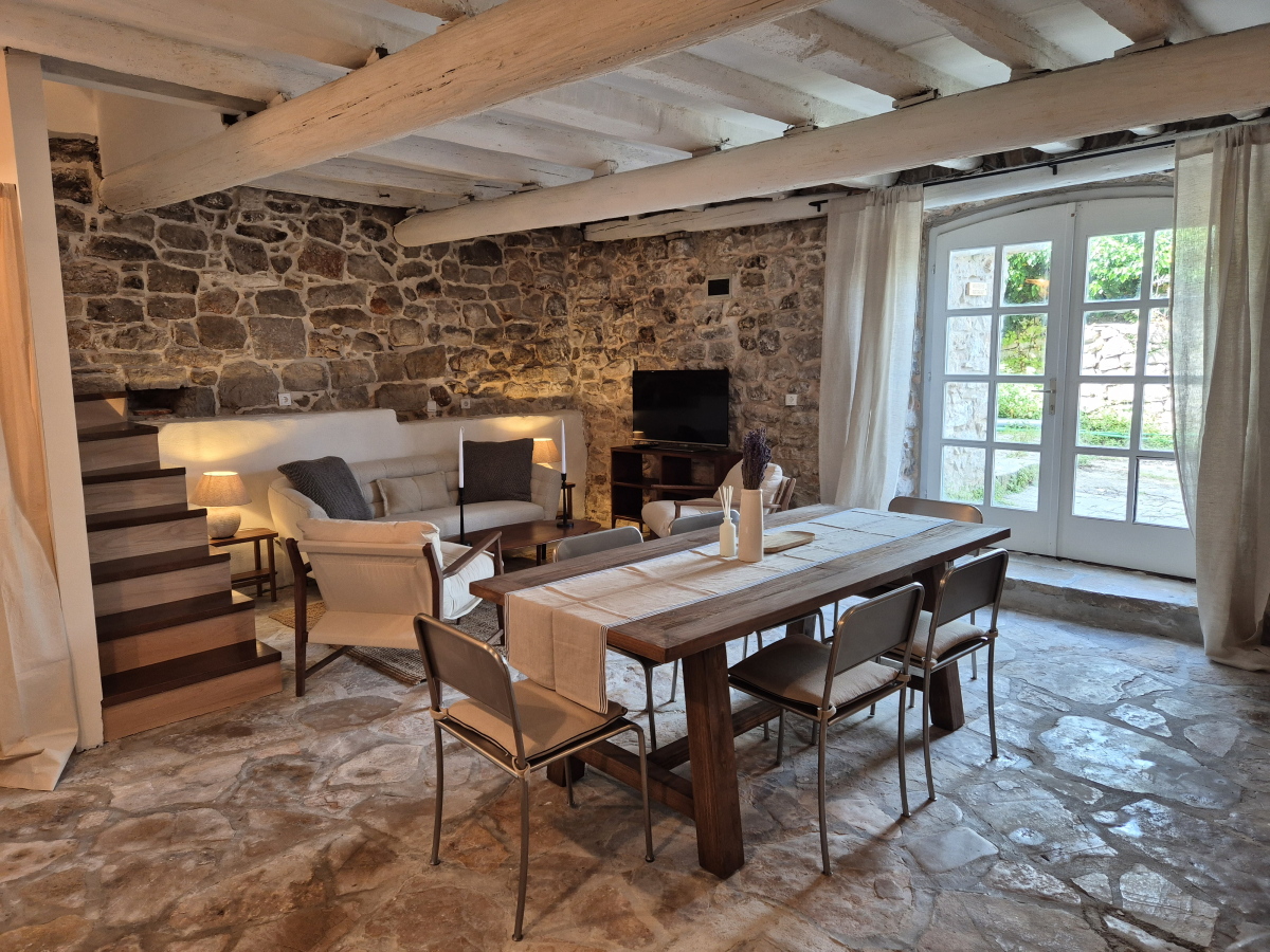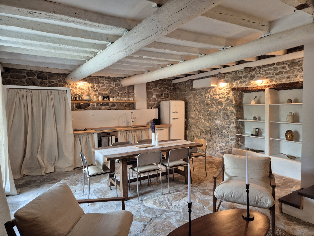 An authentic stone house located in the picturesque village of Pitve, one of the oldest and most charming settlements on the island of Hvar. This property represents a perfect blend of traditional Dalmatian architecture and modern comfort, coming fully renovated and equipped for immediate move-in or tourist rental. The interior of the house is functionally distributed over three floors. The ground floor is designed as the heart of the home, featuring a kitchen and living area ideal for relaxed gatherings. The first floor consists of two cozy bedrooms and a bathroom, while the second floor is reserved for a spacious master bedroom with an accompanying large bathroom. This top floor offers a beautiful view of the sea, while other windows reveal charming views of the village and the lush Hvar landscape. The entire space is air-conditioned to ensure a comfortable stay throughout the year. In front of the house is a courtyard, providing precious outdoor space for relaxing. Pitve itself is renowned for its preserved stone architecture, wine tradition, and the peace it offers away from summer crowds, despite being only a few minutes’ drive from Jelsa and the sea. The island of Hvar, as one of the sunniest and most diverse Adriatic islands, offers an ideal balance of natural beauty, world-class gastronomy, and rich history, making this house an excellent opportunity for anyone seeking their own corner of the Mediterranean.